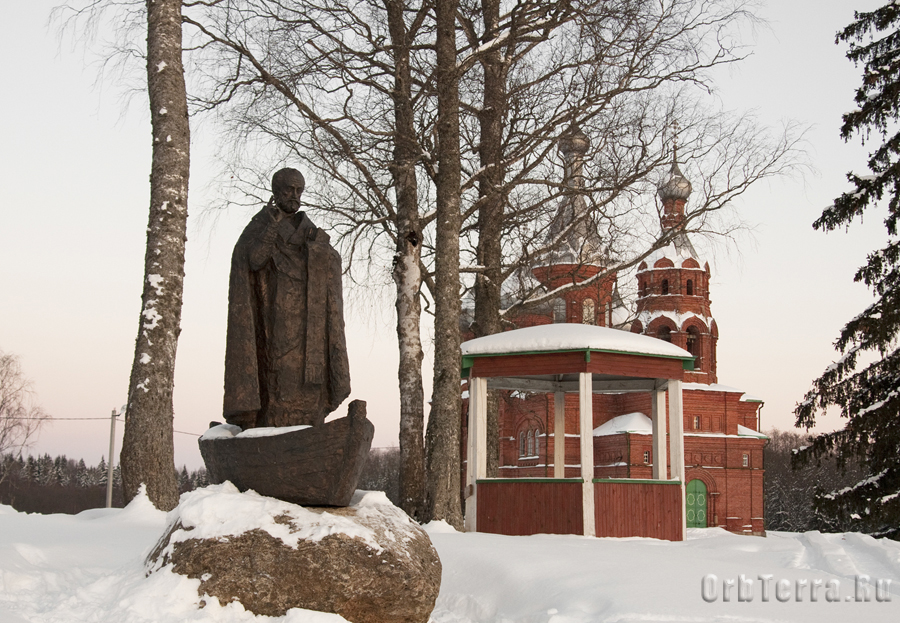 Бронзовый, высотой 2,5 метра, скульптурный образ, Святителя Николая, вплывающего на лодке в великую русскую реку, и благословляющего ее, установлен рядом с Никольской церковью в 2001 году. Создан, скульпторами Борисом Сергеевым и Ольгой Панкратовой.