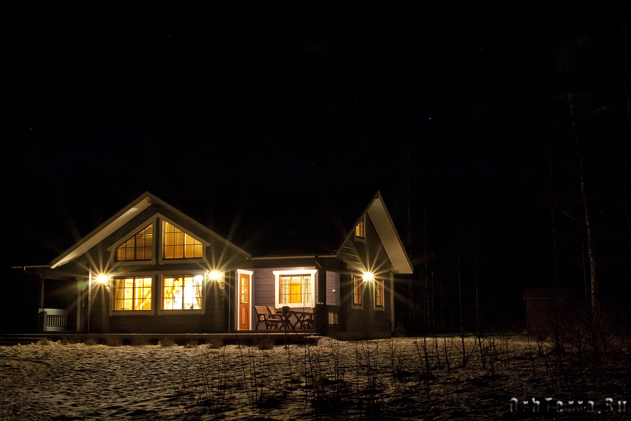 В Килваккалу мы прибыли уже в полной темноте. На въезде в деревню один единственный фонарь освещающий въезд и указатель. В самой деревне освещение есть у каждого дома, как правило, у входа на участок и у дверей расположены энергосберегающие светильники. Не очень яркие, но дающие достаточно света, чтобы видеть. Зато деревня вечером и ночью имеет какой то завораживающий, сказочный вид.