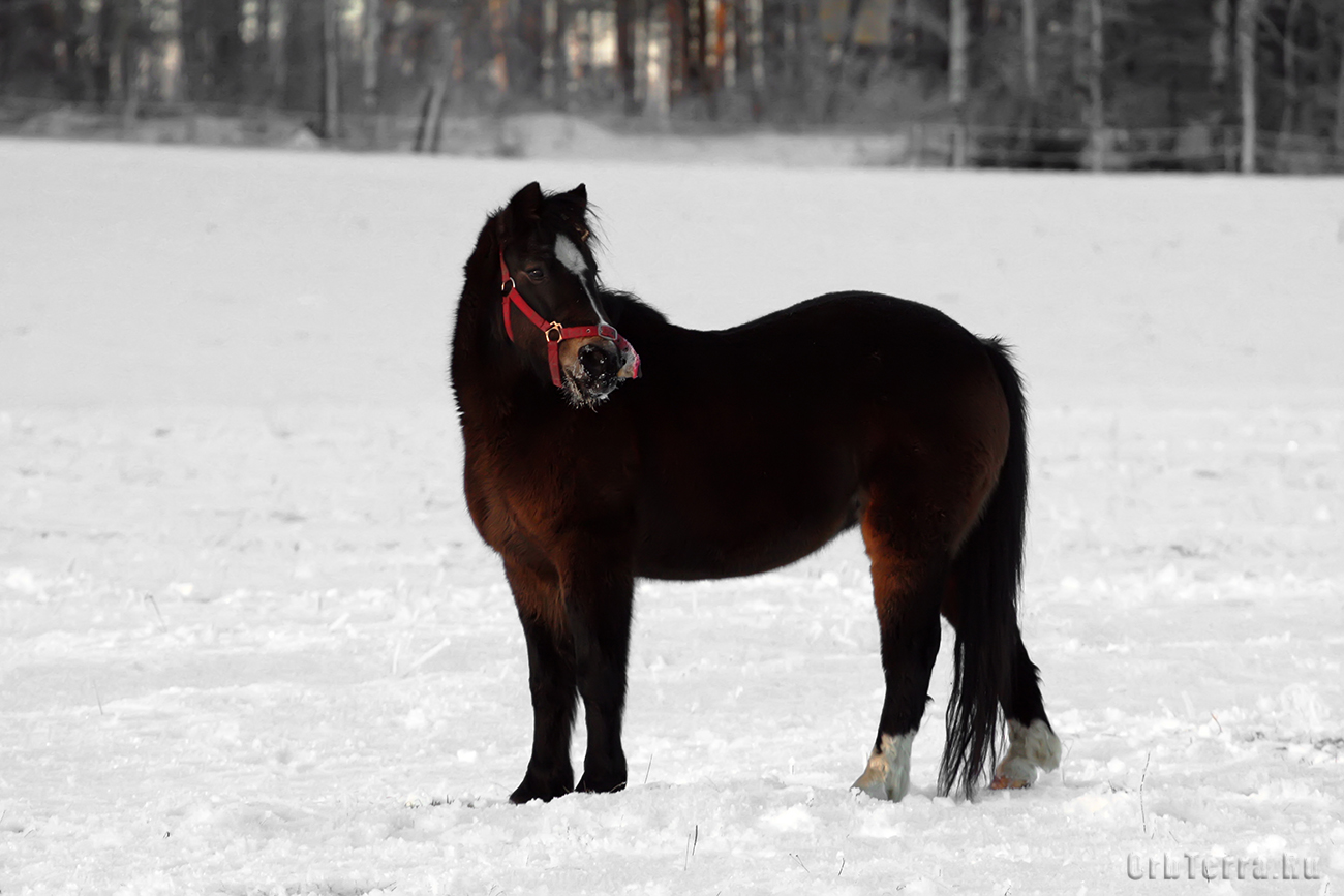 Обратили внимание на большое количество лошадок, по крайней мере в этой местности. Вдоль многих дорог есть отдельные дорожки для езды на конных повозках и экипажах. Сами лошадки небольшие, с густой шерстью и умеют очень ловко добывать пропитание из под снега.