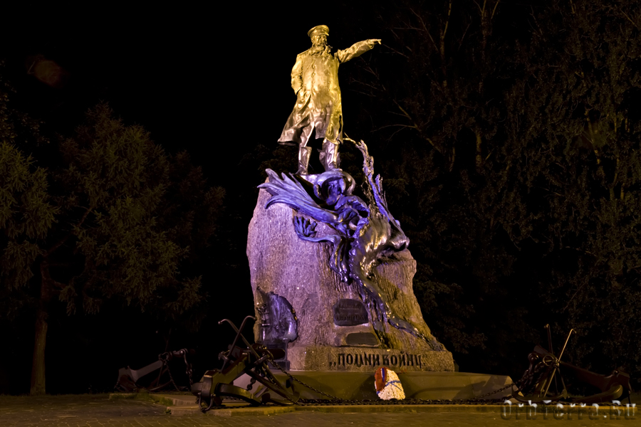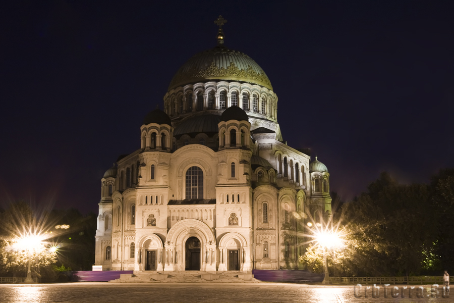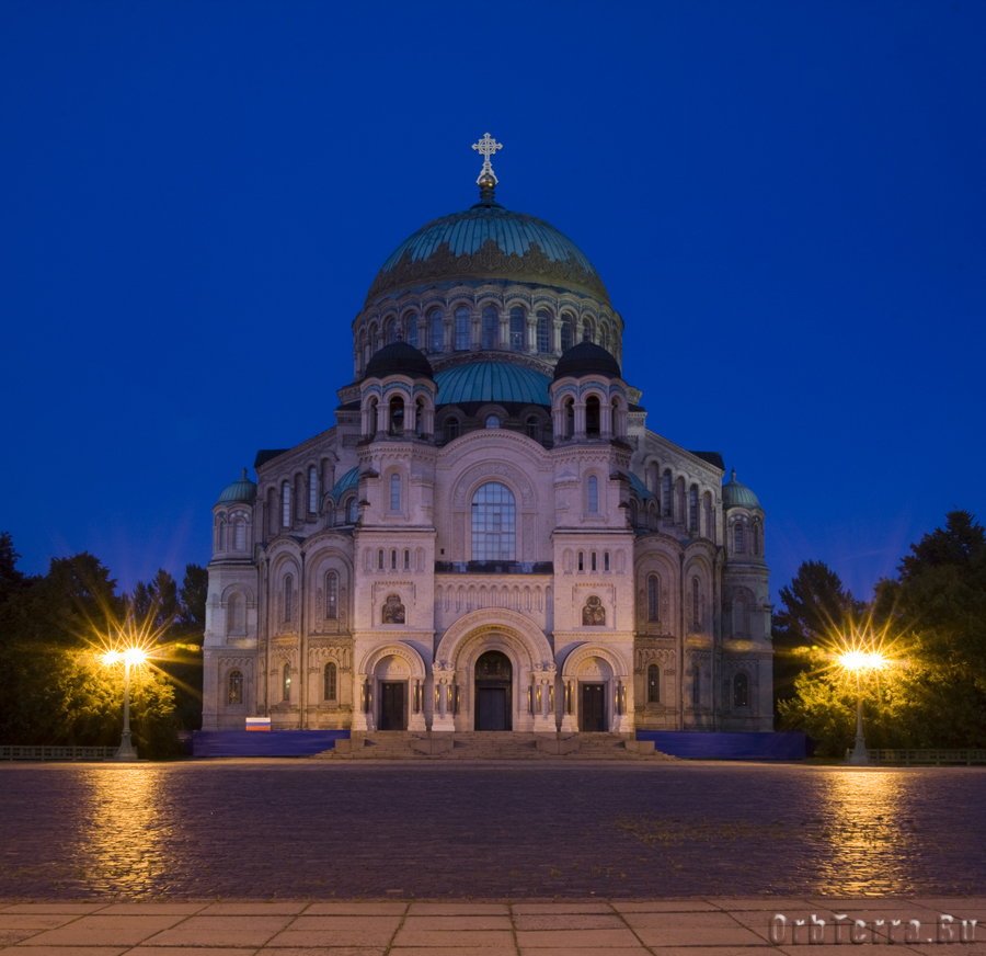 И вот мы у цели нашего путешествия, солнце еще не зашло и мы немного побродили по Якорной площади, попрыгали и загадали желание на уникальной чугунной мостовой и потерли нос медведю на памятнике адмиралу Макарову. А с закатом, мы увидели то зачем стремились сюда, Морской собор на фоне вечернего неба и с ночной подсветкой. Хотя у собора она оказалась, на мой взгляд, слабовата, памятник адмиралу Макарову подсвечен гораздо более интересно. И тем не менее, он впечатляет, и размерами и красотой, четко рисуясь на фоне темно синего неба.