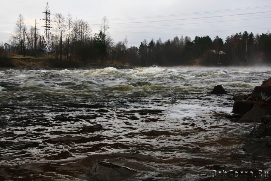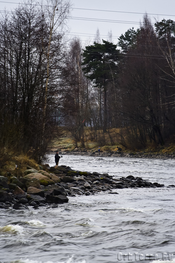 Нам повезло, ни тихоходов, ни ДТП не встретилось, так что доехали чинно и спокойно, так что, упомянуть стоит только о мосте через реку Вуокса, точнее, через ее Лосевскую протоку. Протока бурным потоком несется к Ладоге, вздымая белые буруны и взбивая водяную пыль, которая оседает на дорогу и при низкой температуре образует, сразу после моста, очень неприятную наледь.