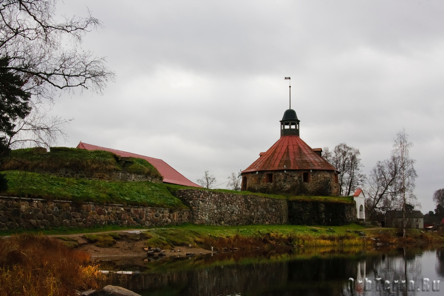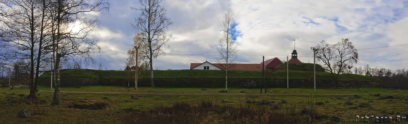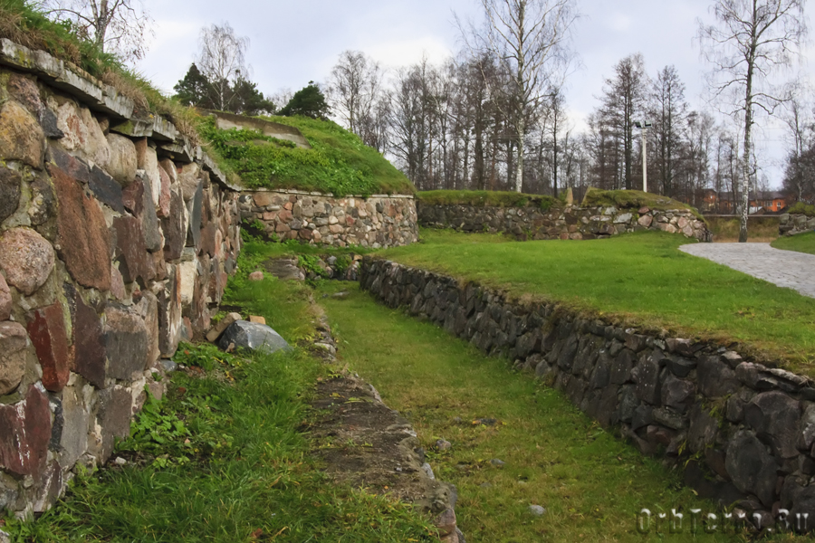 Крепость совсем небольшая, но очень живописная, стоит на зеленом полуострове, окруженном тихими водами Вуоксы. Можно представить, как все выглядело это тихое место 150 лет назад. До появления Лосевской протоки, это был основной сток Вуоксы в Ладогу, и уровень воды здесь был на 2 метра выше. Тот бурный поток, что мы видели в Лосево, 150 лет назад несся здесь, омывая стены крепости.